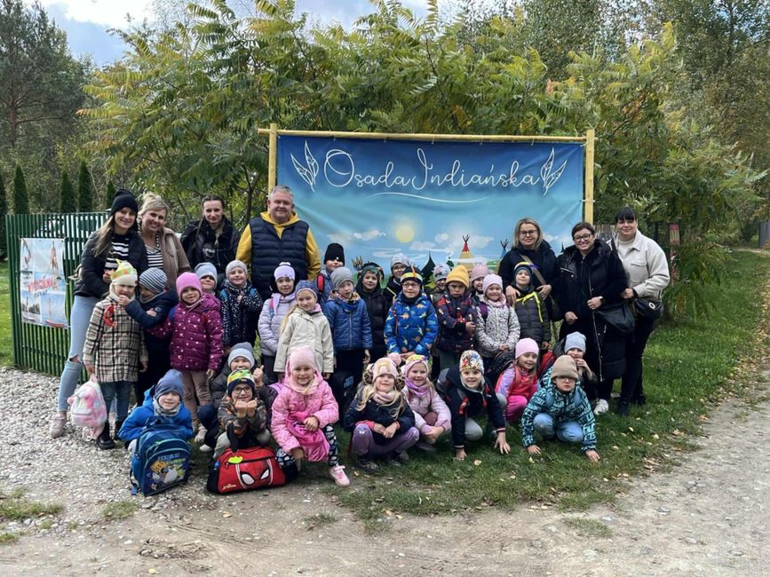 Cały artykuł >>14 października 2025 roku dzieci z grup „Smoki” i „Gwiazdki” wyruszyły na niezwykłą wyprawę do Osady Indiańskiej w Ostrowie Lubelskim. Już sama podróż była dla przedszkolaków wielkim przeżyciem – z okien autokaru z zainteresowaniem obserwowały mijane krajobrazy, z radością rozmawiając o tym, co ich czeka.