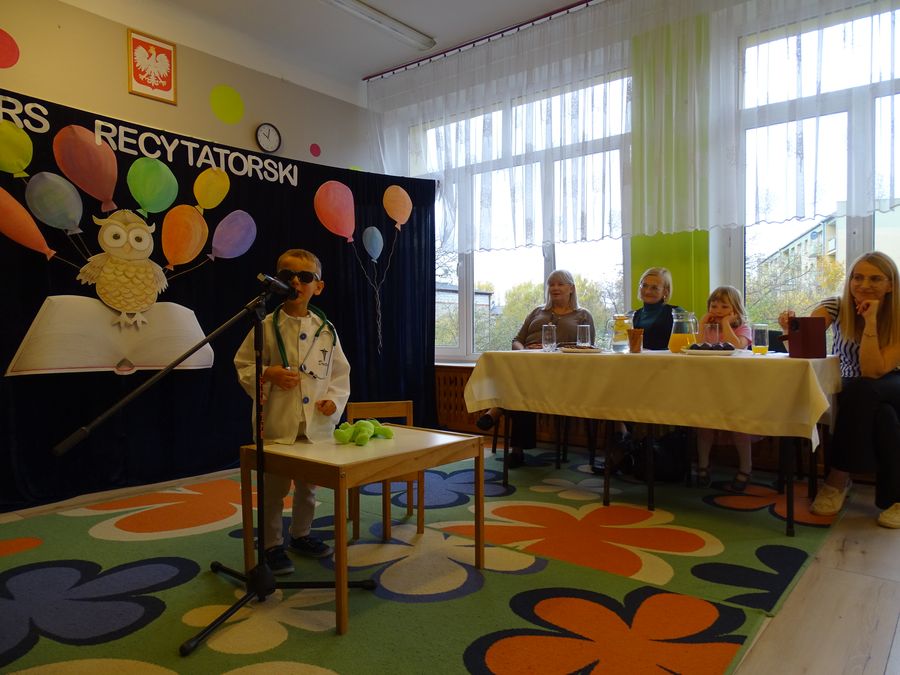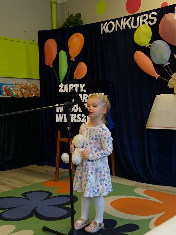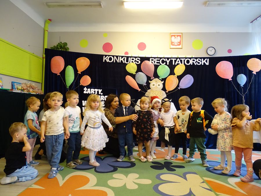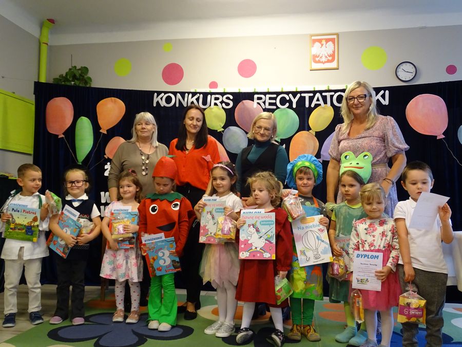 Atmosfera podczas wydarzenia była pełna uśmiechu, wzruszeń i radości. Dziękujemy rodzicom za przygotowanie dzieci do występów oraz pani Wioli z Filii Nr 1 Miejskiej Biblioteki Publicznej, która od wielu lat towarzyszy nam w tym wydarzeniu. Dzięki Waszemu zaangażowaniu i współpracy konkurs stał się prawdziwym świętem poezji w naszym przedszkolu.