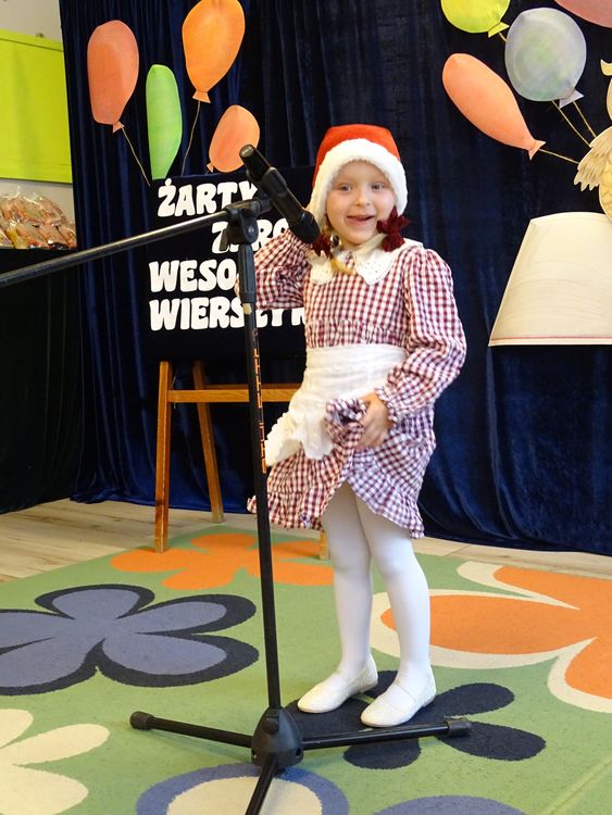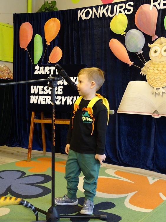 Dnia 24 października 2025 roku w naszym przedszkolu odbyła się XIV edycja konkursu recytatorskiego „Przygoda z wierszem”. Tegoroczne hasło brzmiało: „Żarty, żarciki – wesołe wierszyki”. To wyjątkowe wydarzenie na stałe wpisało się w tradycję naszego przedszkola, a jego celem jest rozwijanie zainteresowania poezją dziecięcą oraz kształtowanie odwagi i pewności siebie podczas publicznych wystąpień.