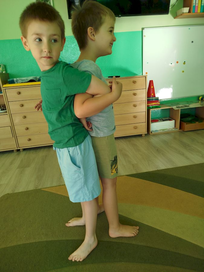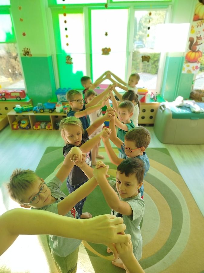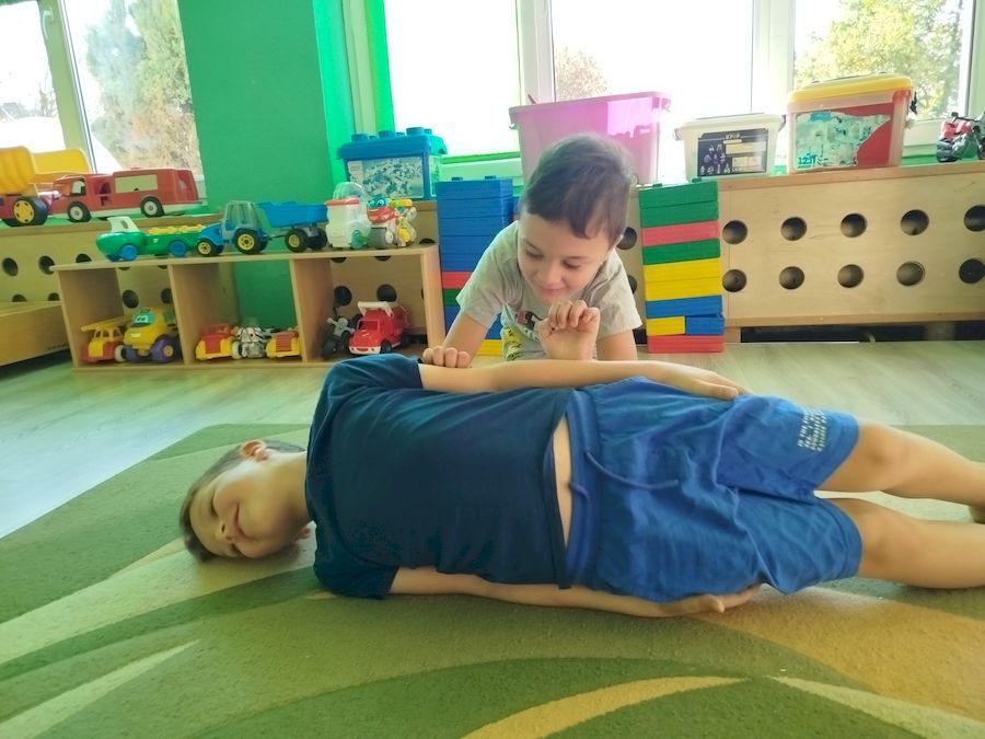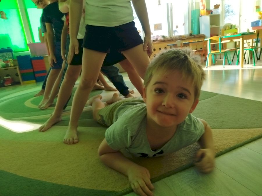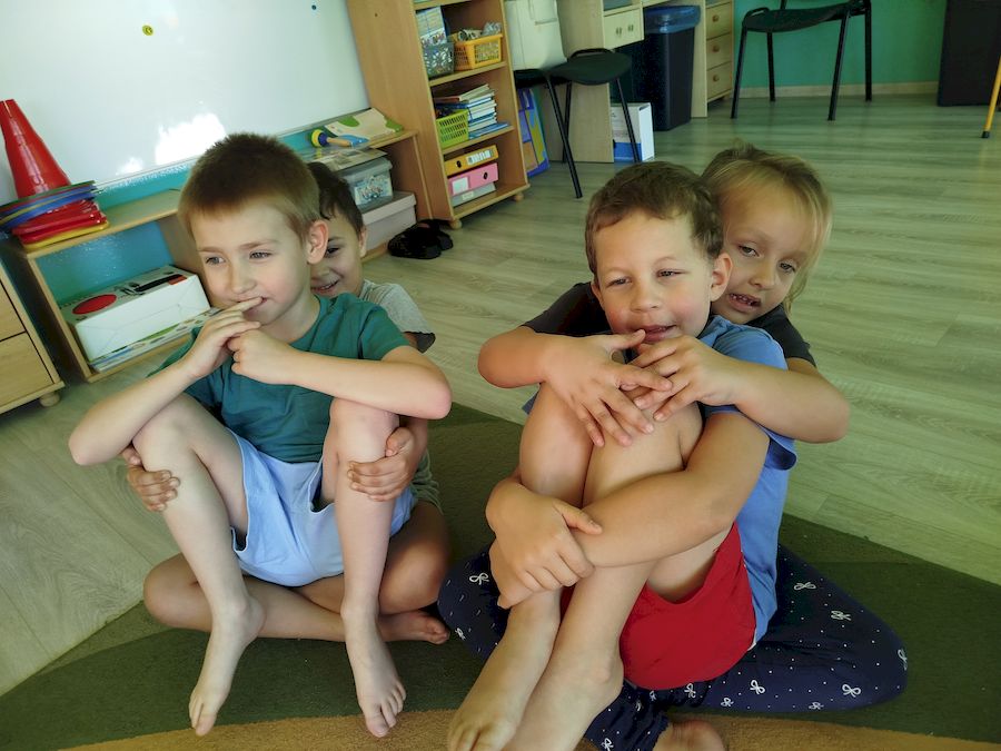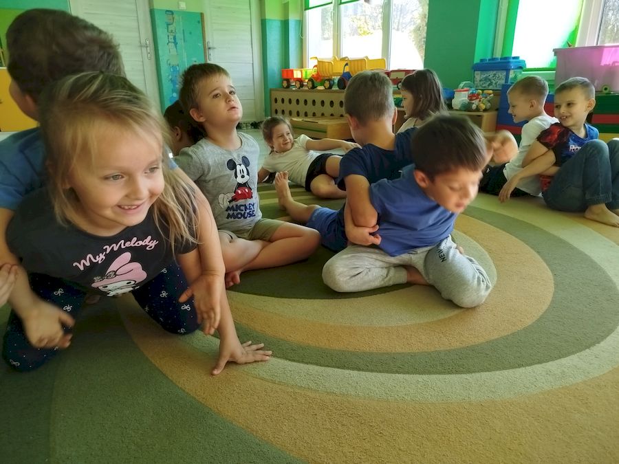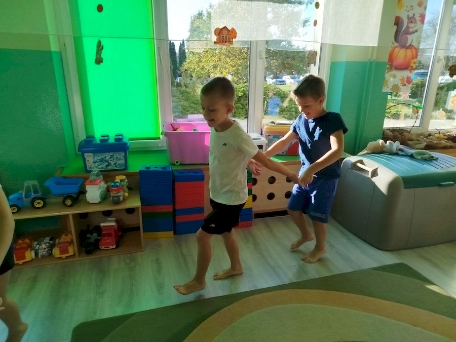 Nie zabrakło też ruchu! Codzienne spacery i zabawy na świeżym powietrzu, a oprócz tego ćwiczenia gimnastyczne z elementami metody Ruchu Rozwijającego Weroniki Sherborne. Ta wyjątkowa forma ćwiczeń nie tylko poprawia sprawność fizyczną, ale również uczy współpracy w parze, buduje zaufanie do koleżanki i kolegi oraz wpływa na budowanie pozytywnych relacji w grupie.