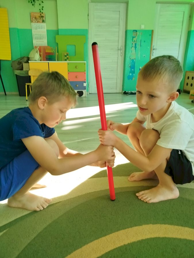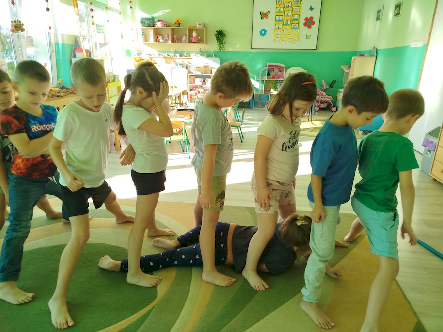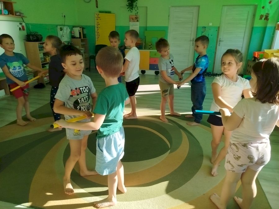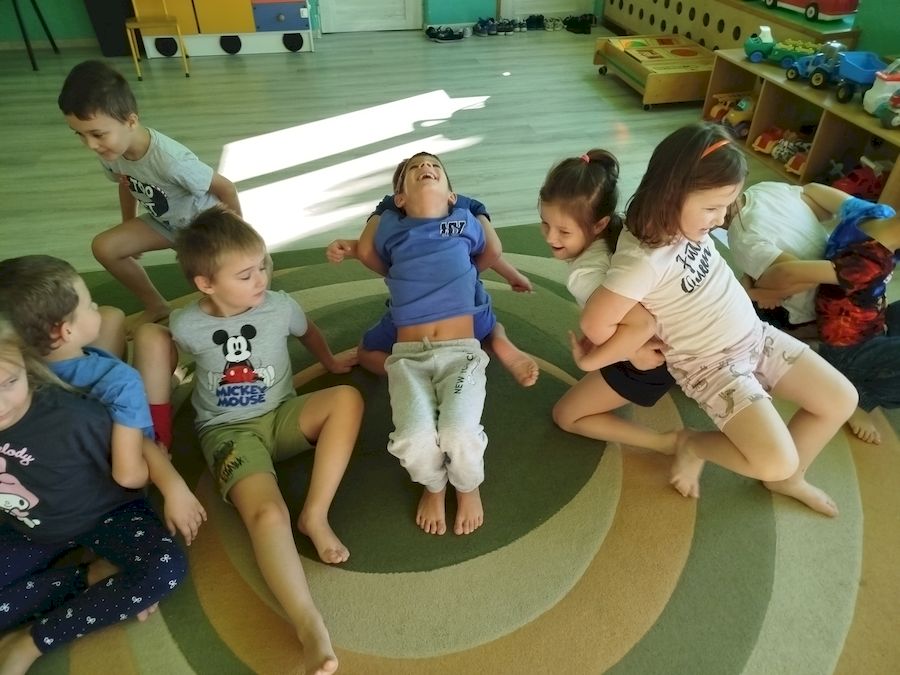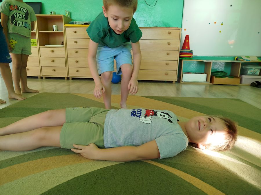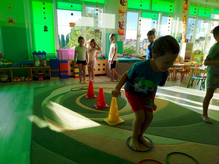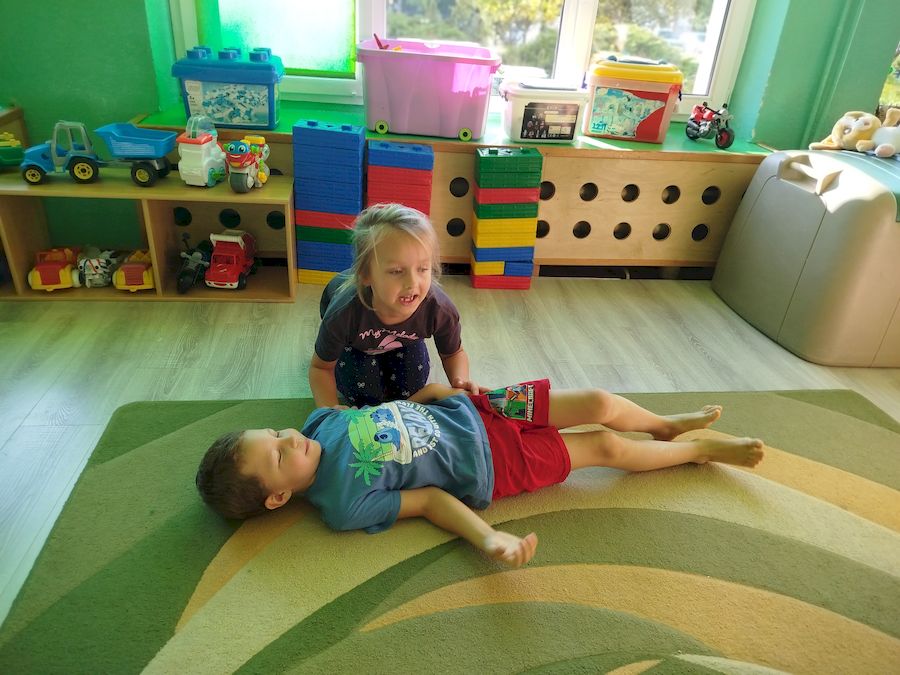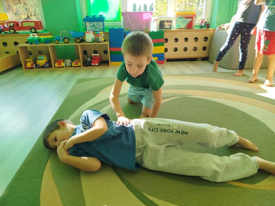 Nie zabrakło też ruchu! Codzienne spacery i zabawy na świeżym powietrzu, a oprócz tego ćwiczenia gimnastyczne z elementami metody Ruchu Rozwijającego Weroniki Sherborne. Ta wyjątkowa forma ćwiczeń nie tylko poprawia sprawność fizyczną, ale również uczy współpracy w parze, buduje zaufanie do koleżanki i kolegi oraz wpływa na budowanie pozytywnych relacji w grupie.