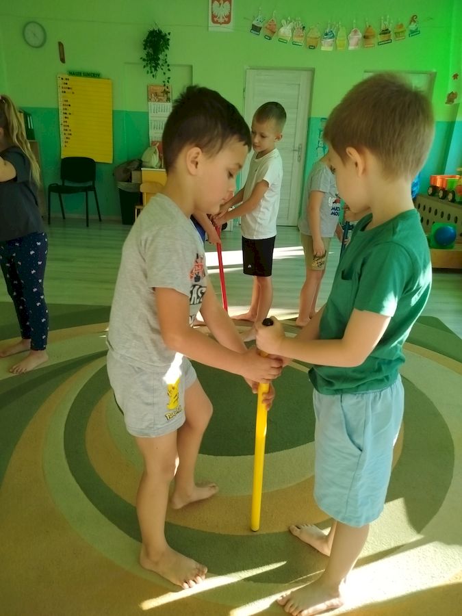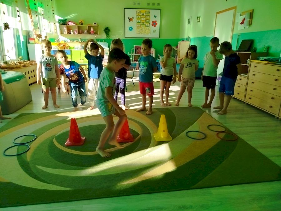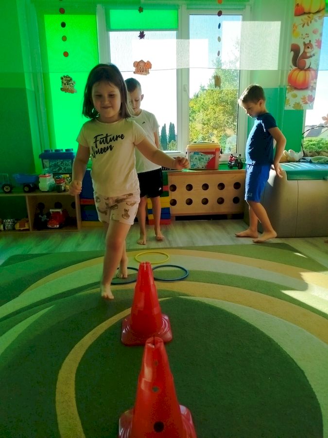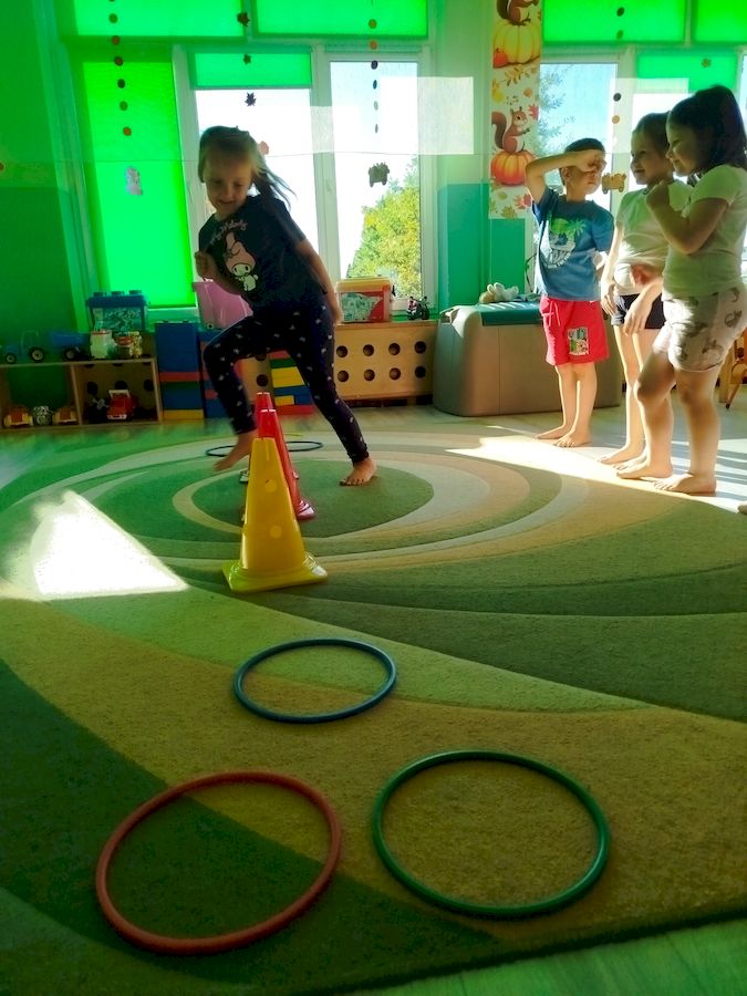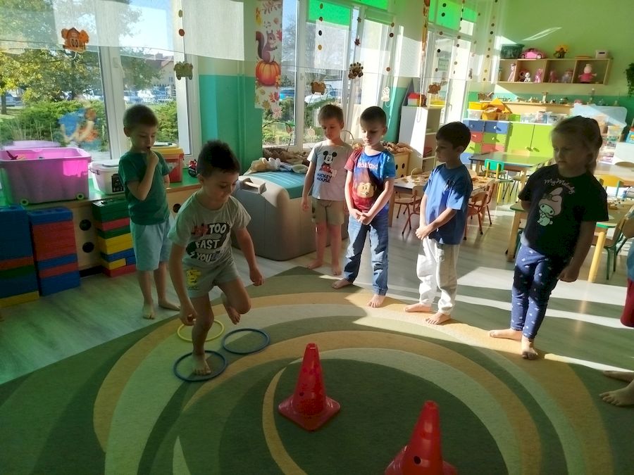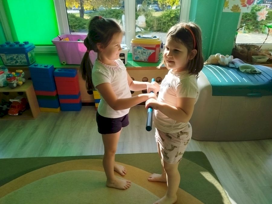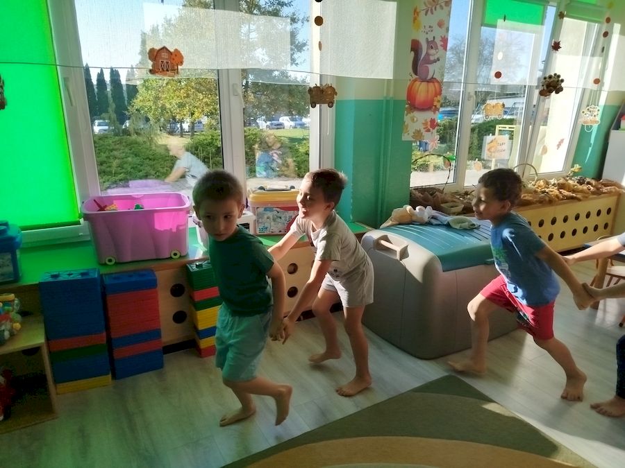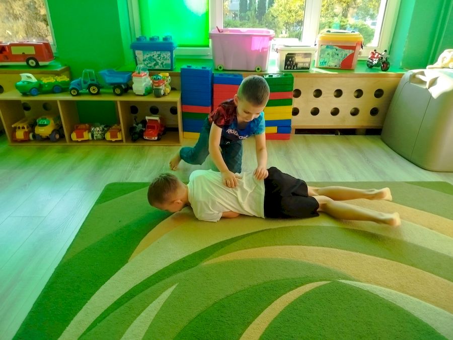 Nie zabrakło też ruchu! Codzienne spacery i zabawy na świeżym powietrzu, a oprócz tego ćwiczenia gimnastyczne z elementami metody Ruchu Rozwijającego Weroniki Sherborne. Ta wyjątkowa forma ćwiczeń nie tylko poprawia sprawność fizyczną, ale również uczy współpracy w parze, buduje zaufanie do koleżanki i kolegi oraz wpływa na budowanie pozytywnych relacji w grupie.