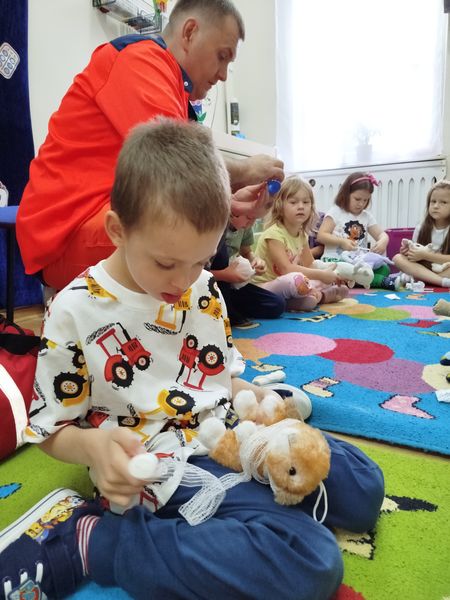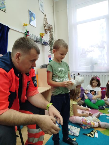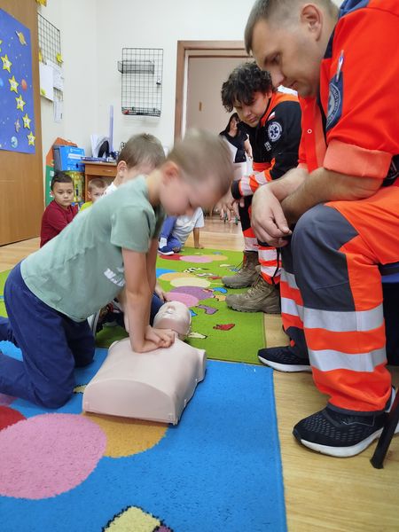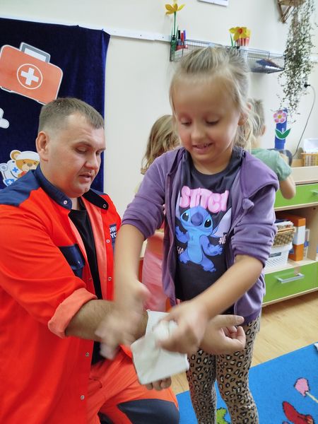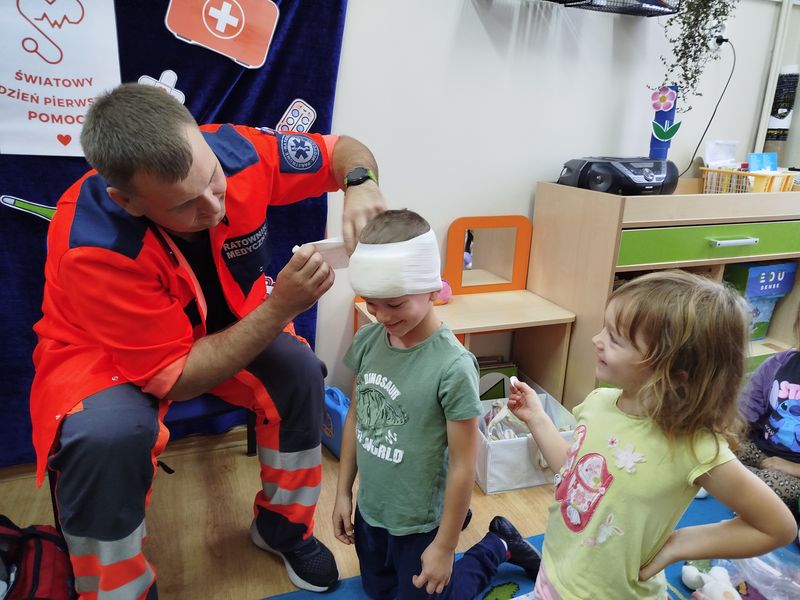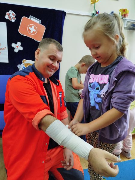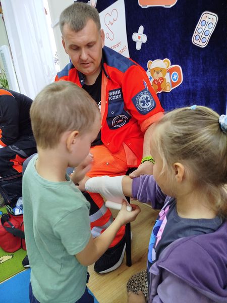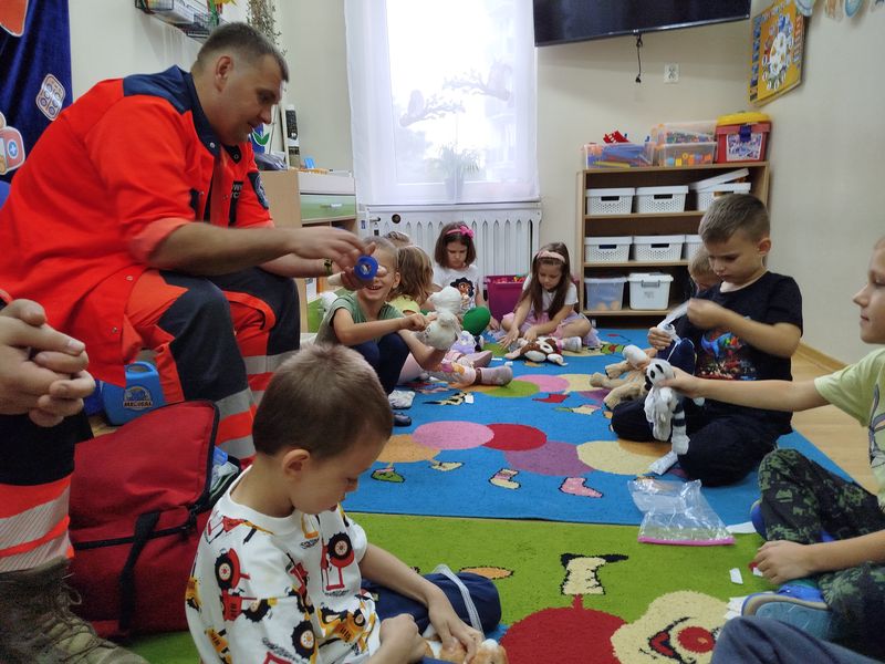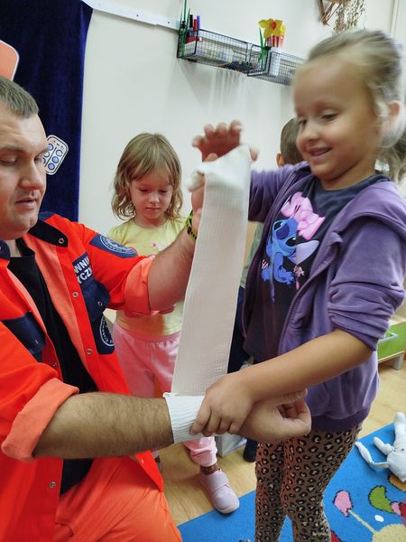 W piątek 12 września w grupie „Gwiazdki” odbyły się wyjątkowe spotkanie z ratownikami medycznymi, którzy wprowadzili dzieci w świat pierwszej pomocy.