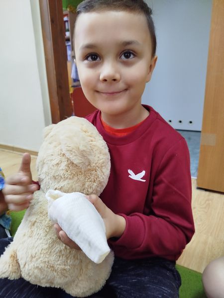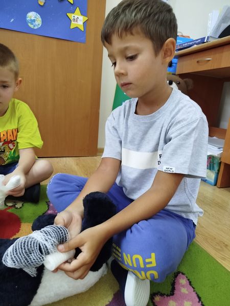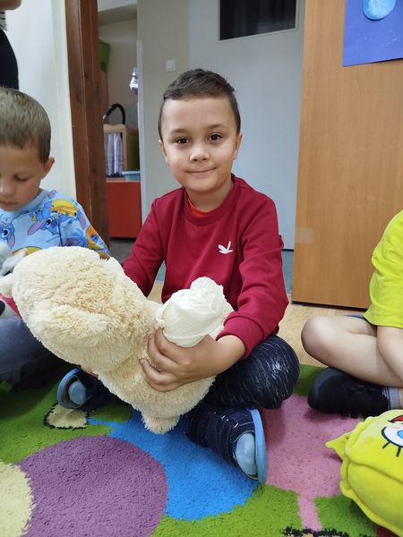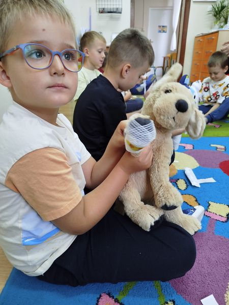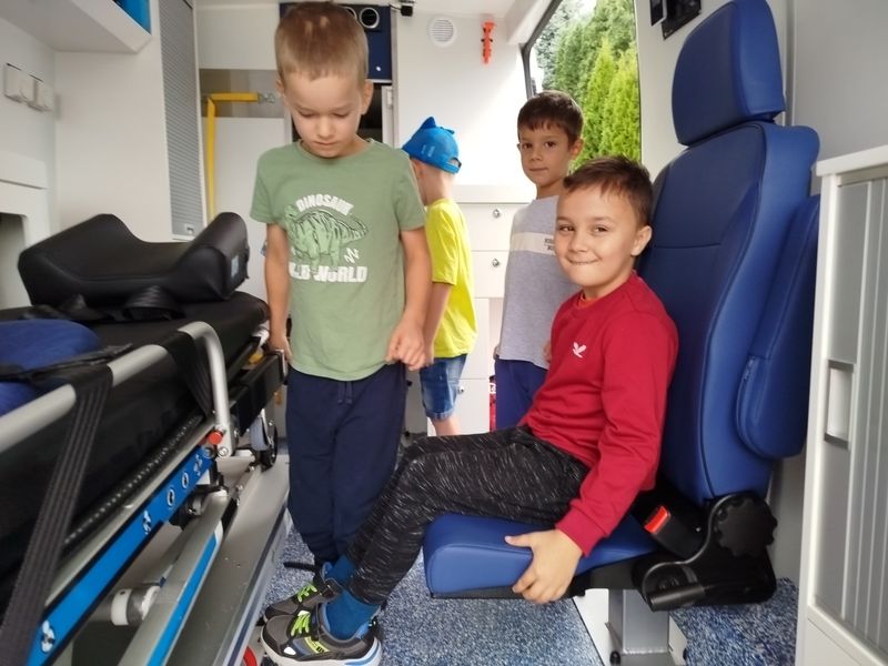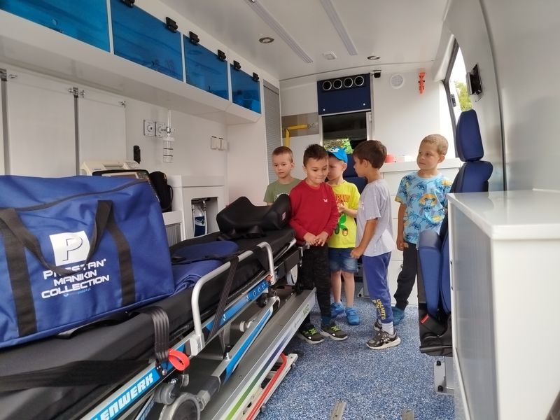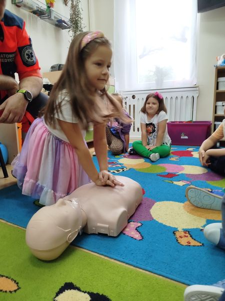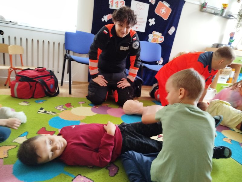 Podczas zajęć przedszkolaki dowiedziały się, jak ważna jest szybka reakcja w sytuacjach zagrożenia zdrowia i życia. Dzieci utrwaliły sobie numery alarmowe i poznały podstawowe zasady wzywania pomocy. Ćwiczyły układanie poszkodowanego w pozycji bezpiecznej. Przekonały się, że nawet małe dziecko przy zastosowaniu odpowiednich chwytów może pomóc dorosłej osobie. Ogromne zainteresowanie dzieci wzbudził fantom, na którym mogły poćwiczyć masaż serca, a także zakładanie opatrunków sobie i swoim pluszakom. Na zakończenie spotkania obejrzeliśmy karetkę pogotowia. Poznaliśmy jej wyposażenie i sprzęt, którego ratownicy używają w swojej pracy.