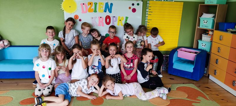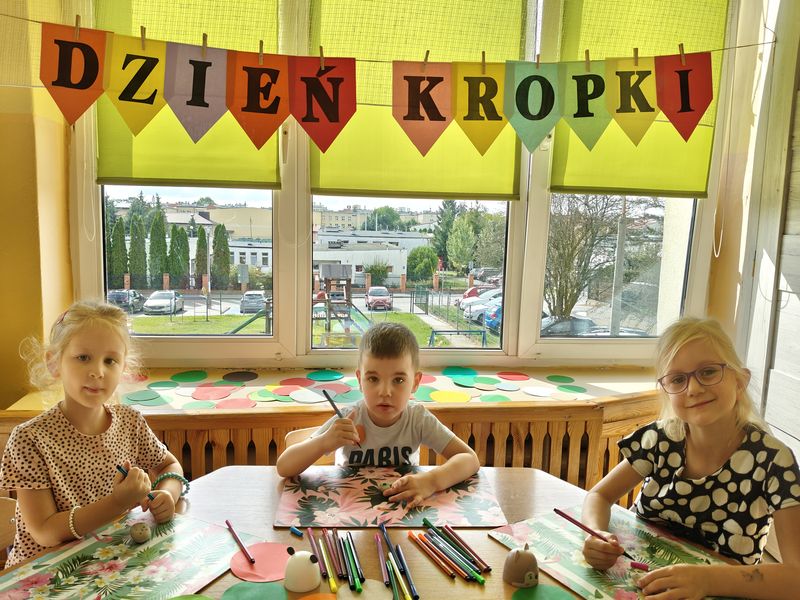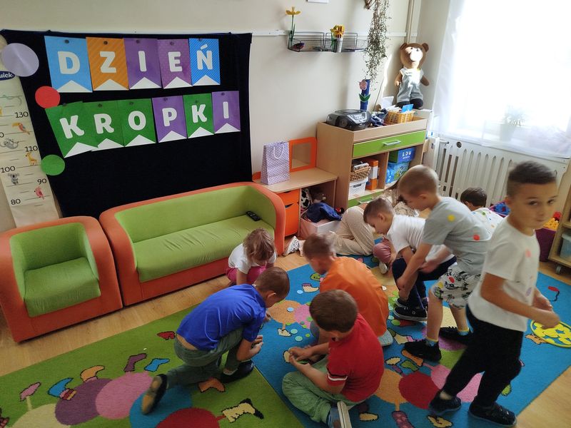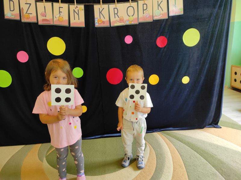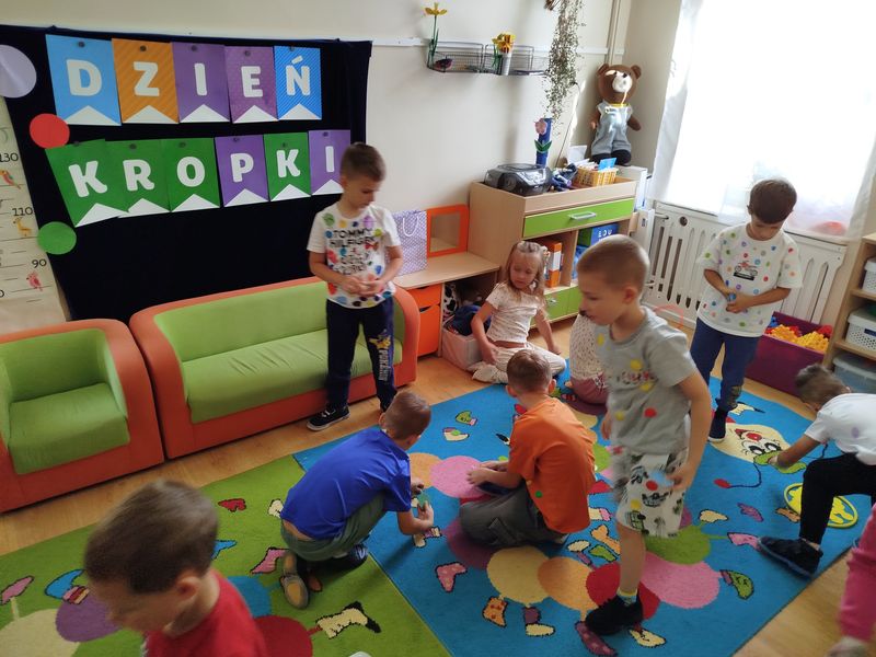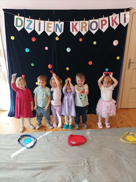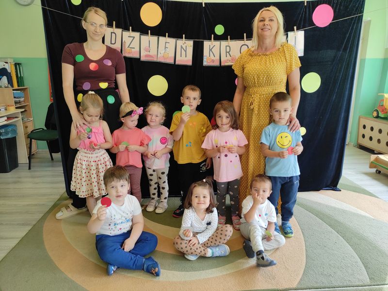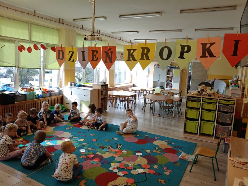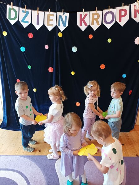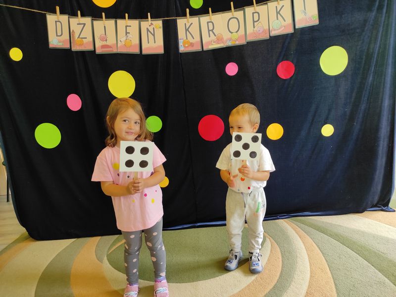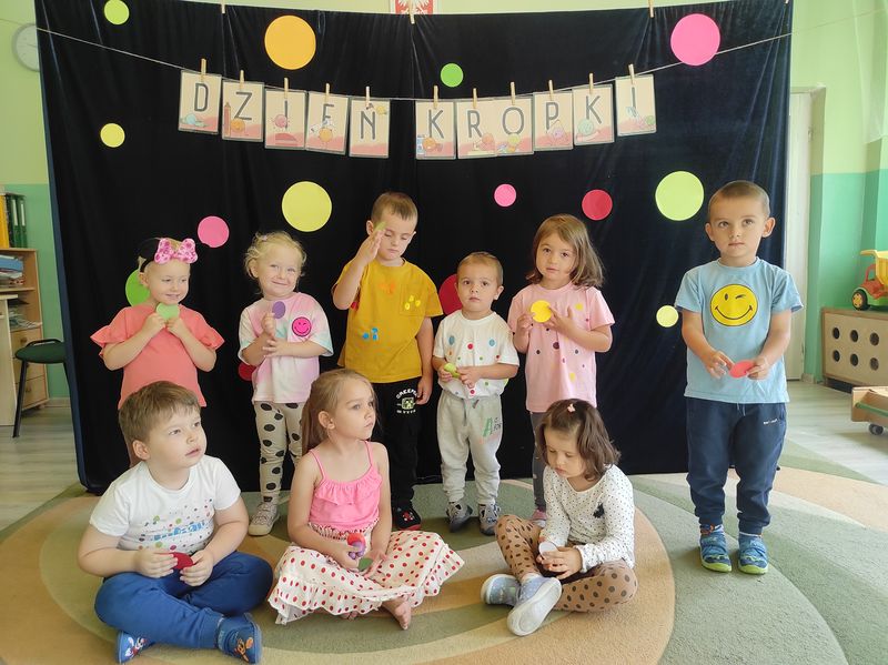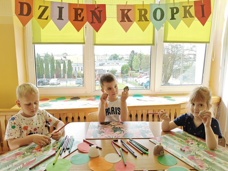 Tego dnia dzieci przyszły do przedszkola w strojach ozdobionych kolorowymi kropkami. W każdej z grup zostały zorganizowane kreatywne, nietuzinkowe zabawy z kropką w roli głównej. Przedszkolaki dowiedziały się w jaki sposób mogą dodawać innym i sobie wiary we własne możliwości. Podczas zajęć powstały też wyjątkowe i niepowtarzalne kropkowe dzieła sztuki.