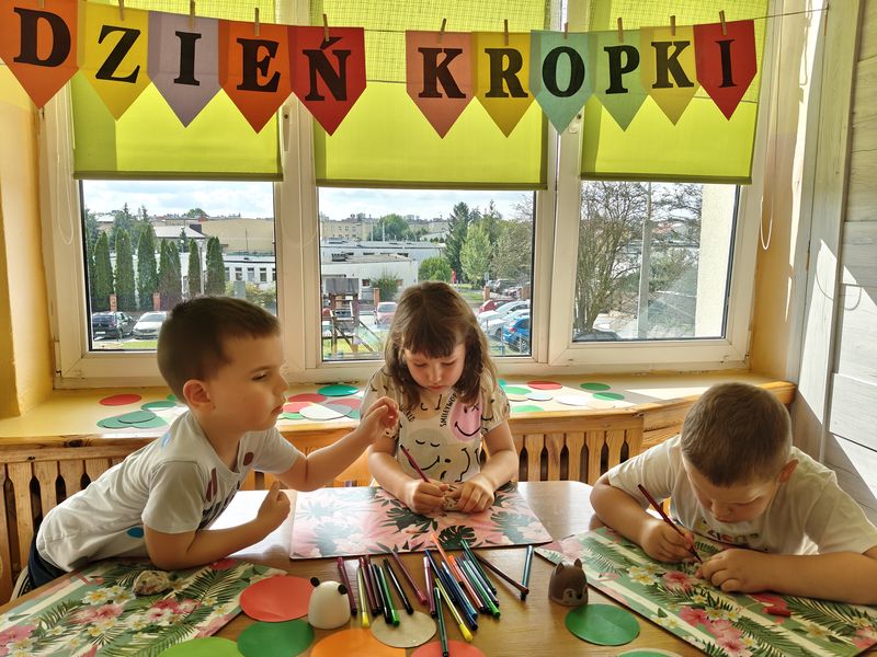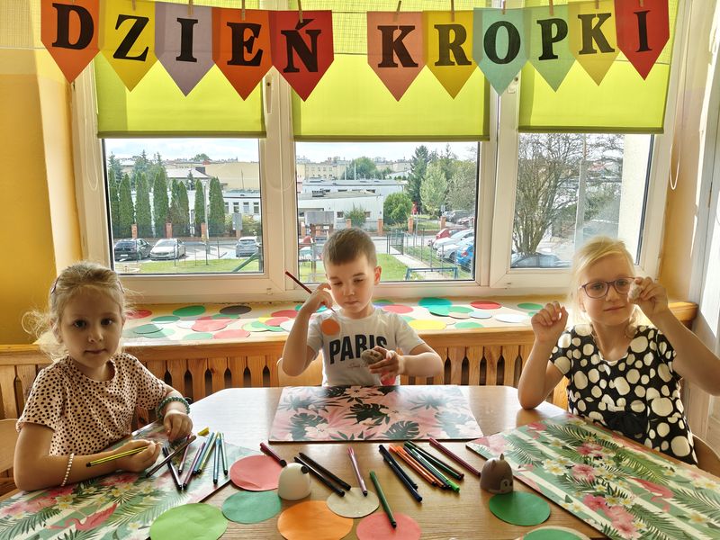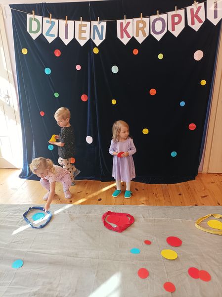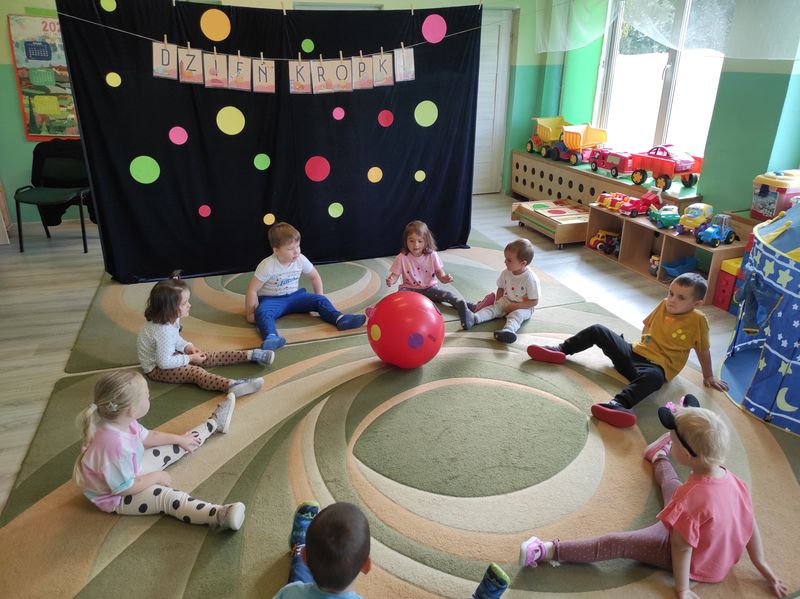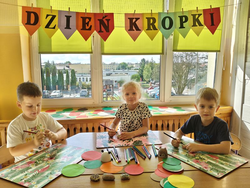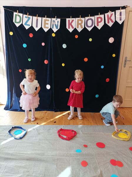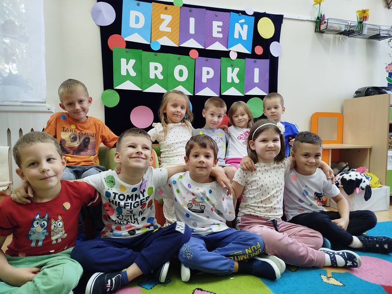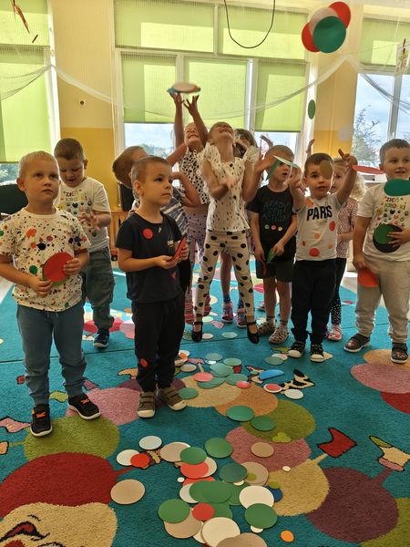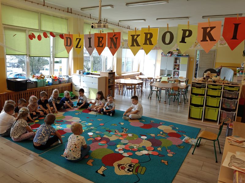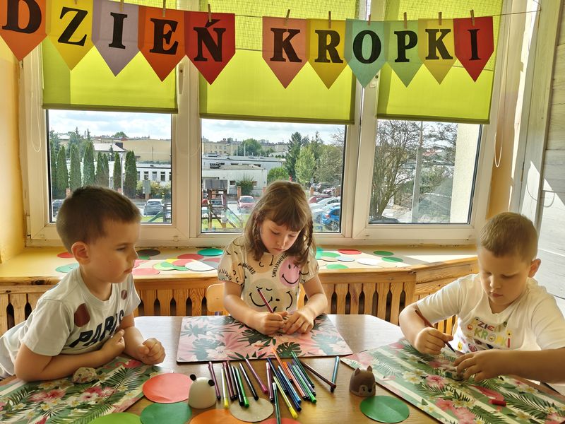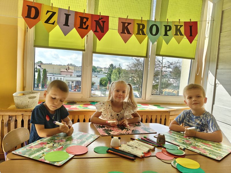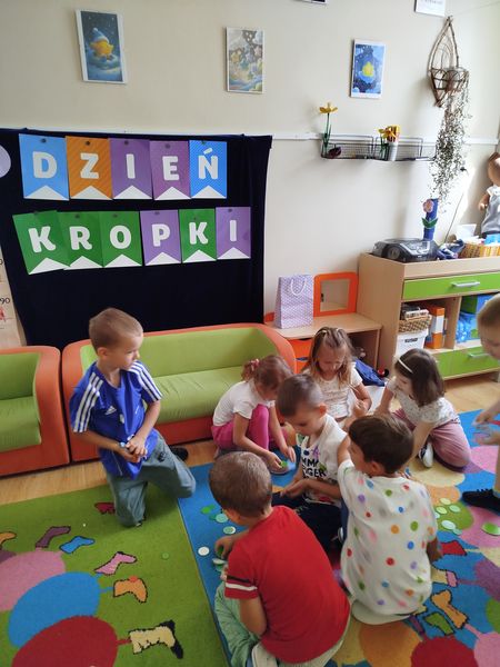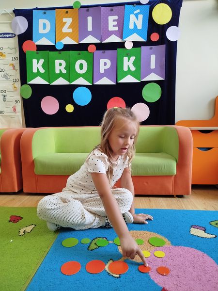Tego dnia dzieci przyszły do przedszkola w strojach ozdobionych kolorowymi kropkami. W każdej z grup zostały zorganizowane kreatywne, nietuzinkowe zabawy z kropką w roli głównej. Przedszkolaki dowiedziały się w jaki sposób mogą dodawać innym i sobie wiary we własne możliwości. Podczas zajęć powstały też wyjątkowe i niepowtarzalne kropkowe dzieła sztuki.
