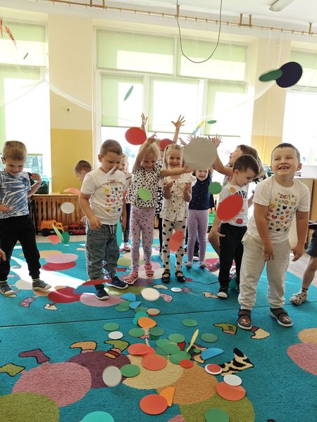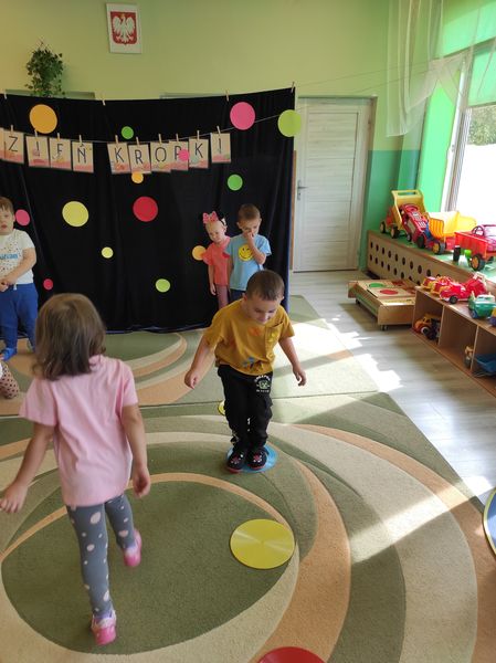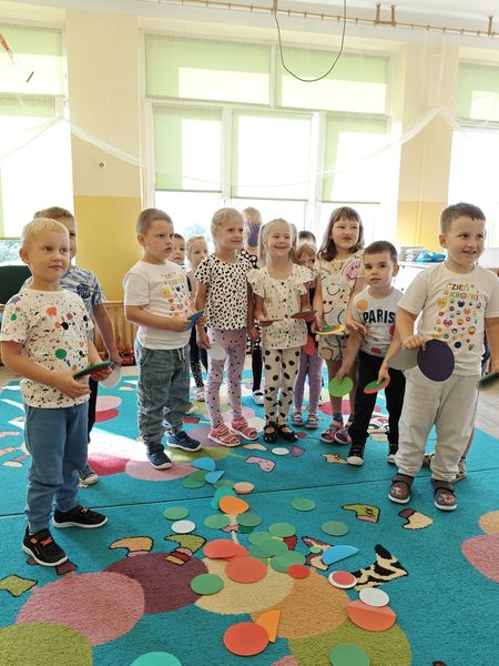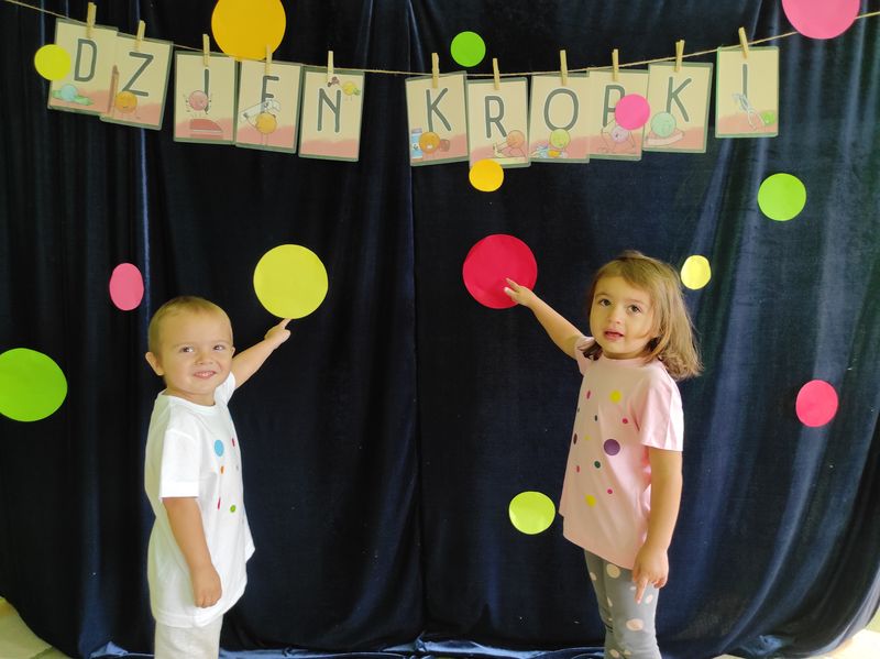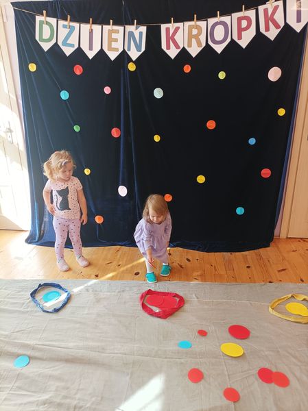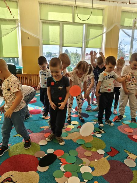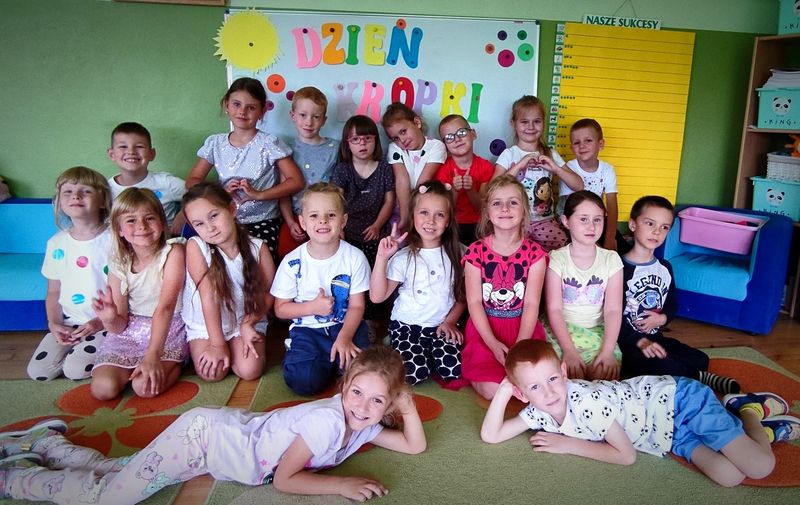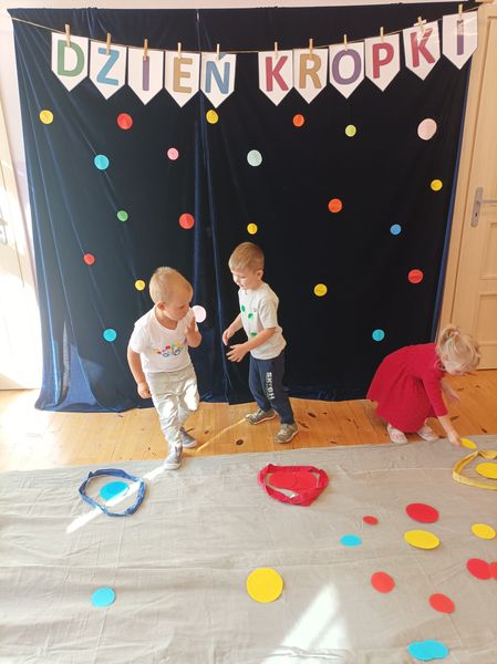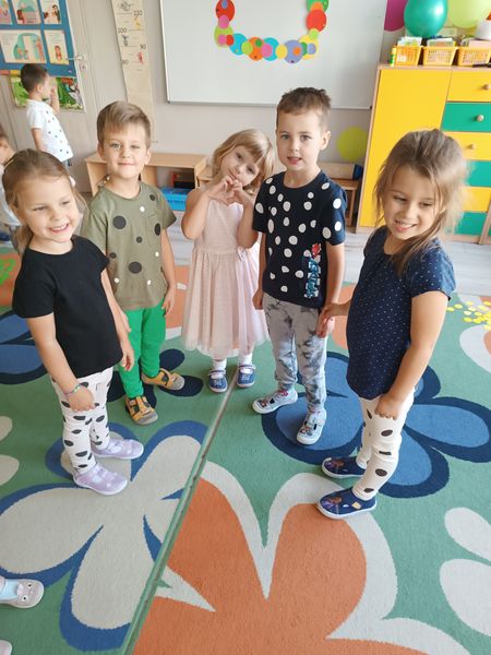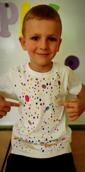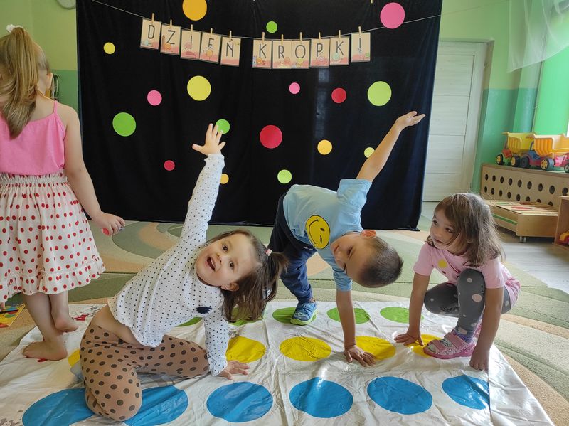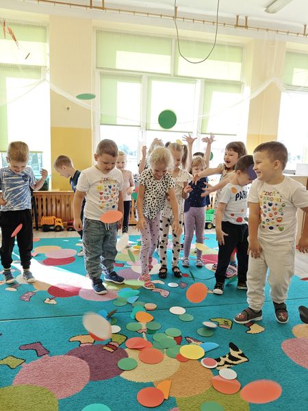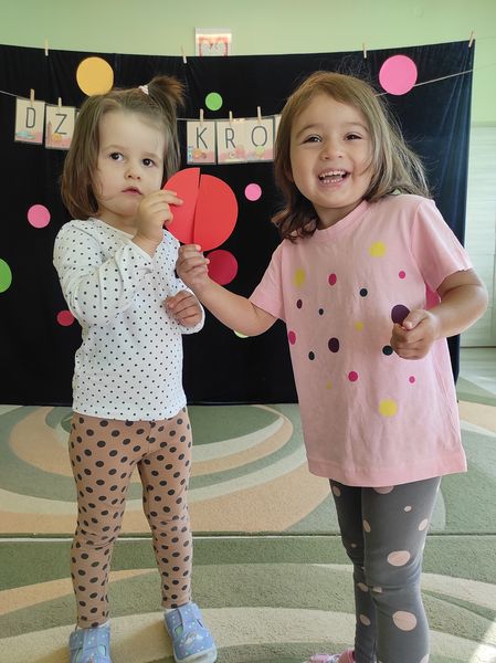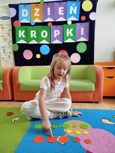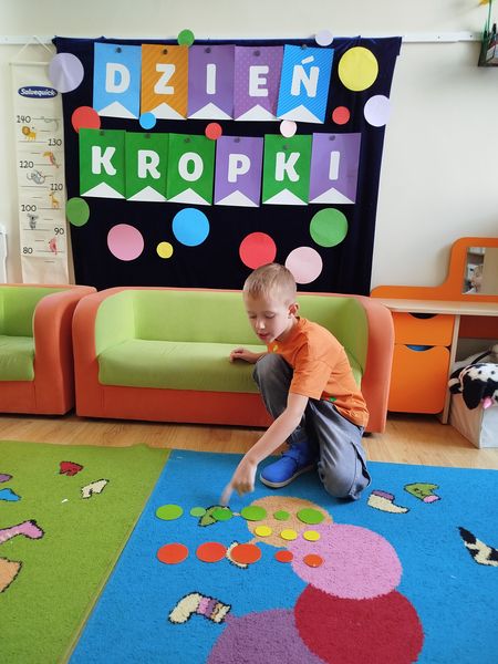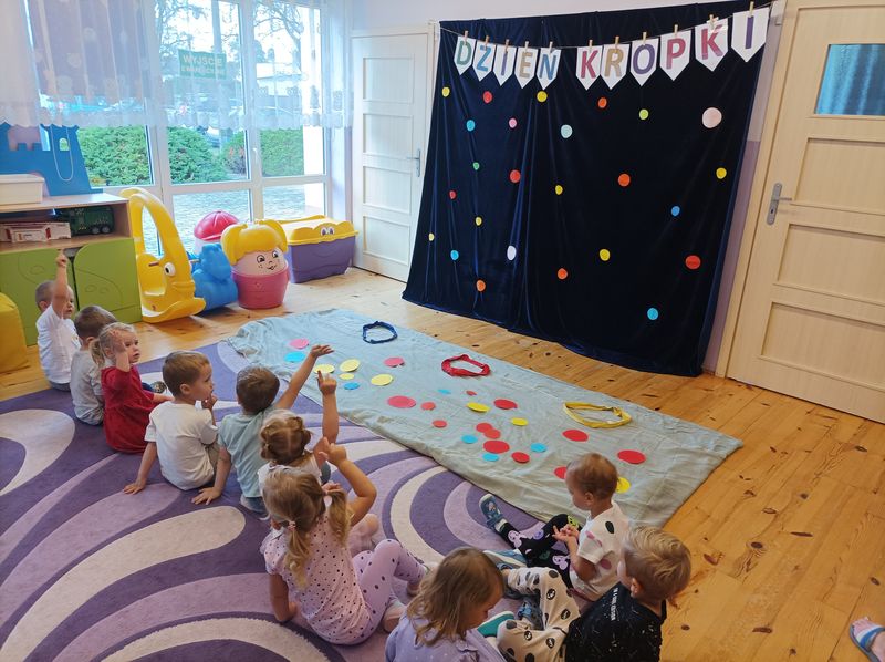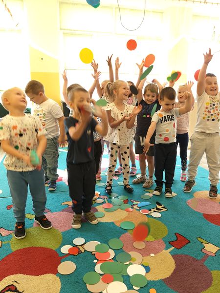 Tego dnia dzieci przyszły do przedszkola w strojach ozdobionych kolorowymi kropkami. W każdej z grup zostały zorganizowane kreatywne, nietuzinkowe zabawy z kropką w roli głównej. Przedszkolaki dowiedziały się w jaki sposób mogą dodawać innym i sobie wiary we własne możliwości. Podczas zajęć powstały też wyjątkowe i niepowtarzalne kropkowe dzieła sztuki.