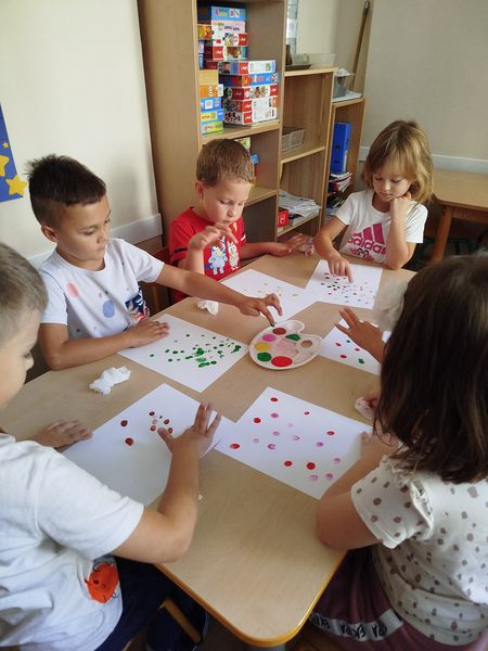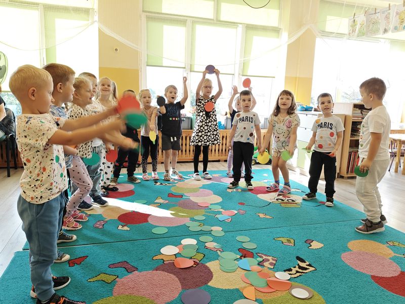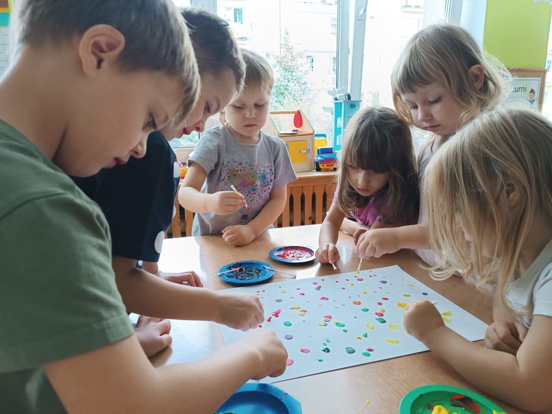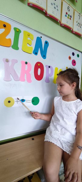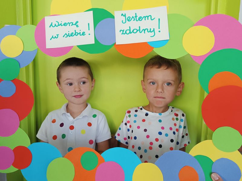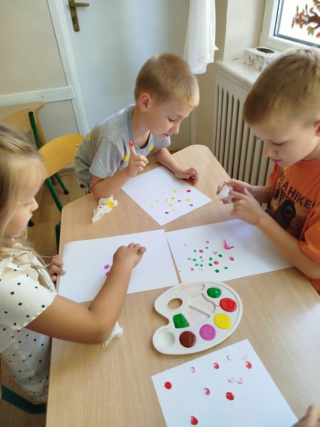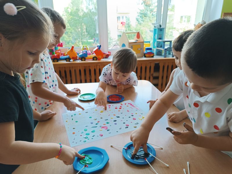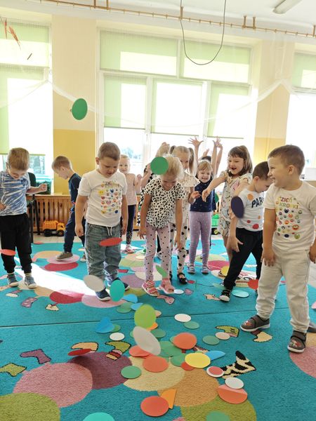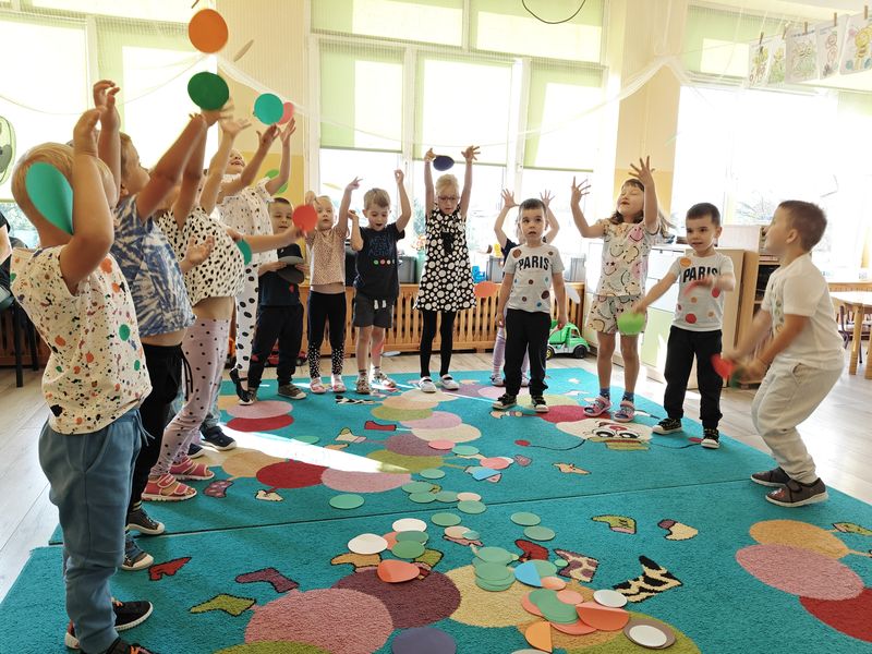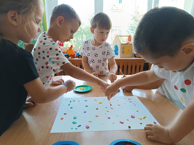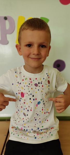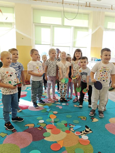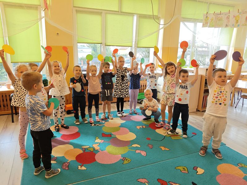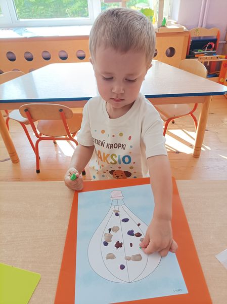 Tego dnia dzieci przyszły do przedszkola w strojach ozdobionych kolorowymi kropkami. W każdej z grup zostały zorganizowane kreatywne, nietuzinkowe zabawy z kropką w roli głównej. Przedszkolaki dowiedziały się w jaki sposób mogą dodawać innym i sobie wiary we własne możliwości. Podczas zajęć powstały też wyjątkowe i niepowtarzalne kropkowe dzieła sztuki.