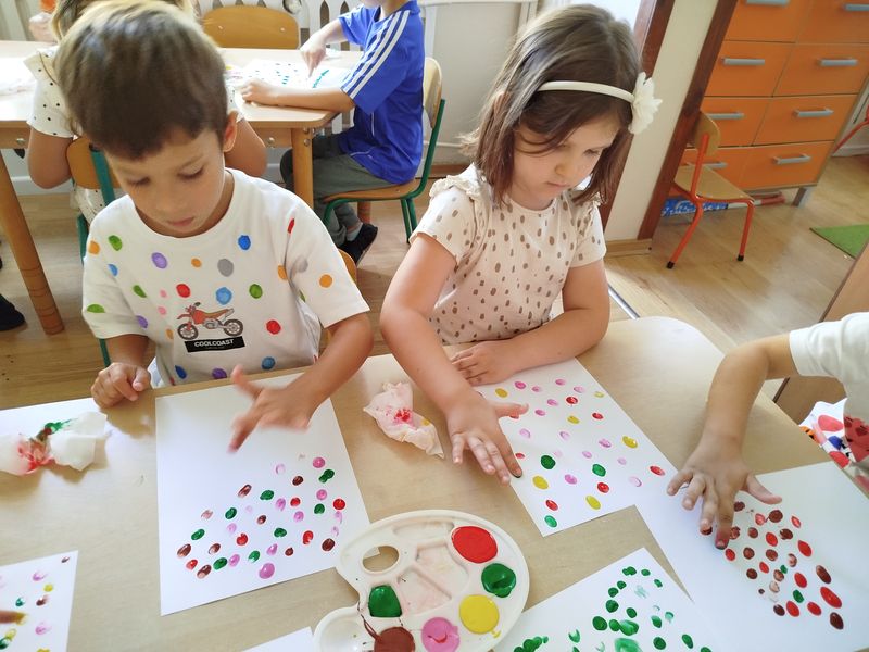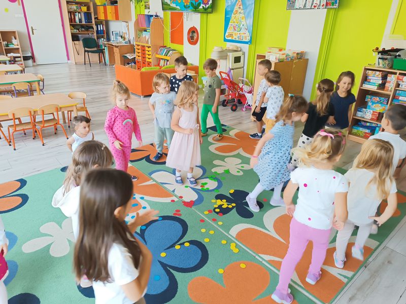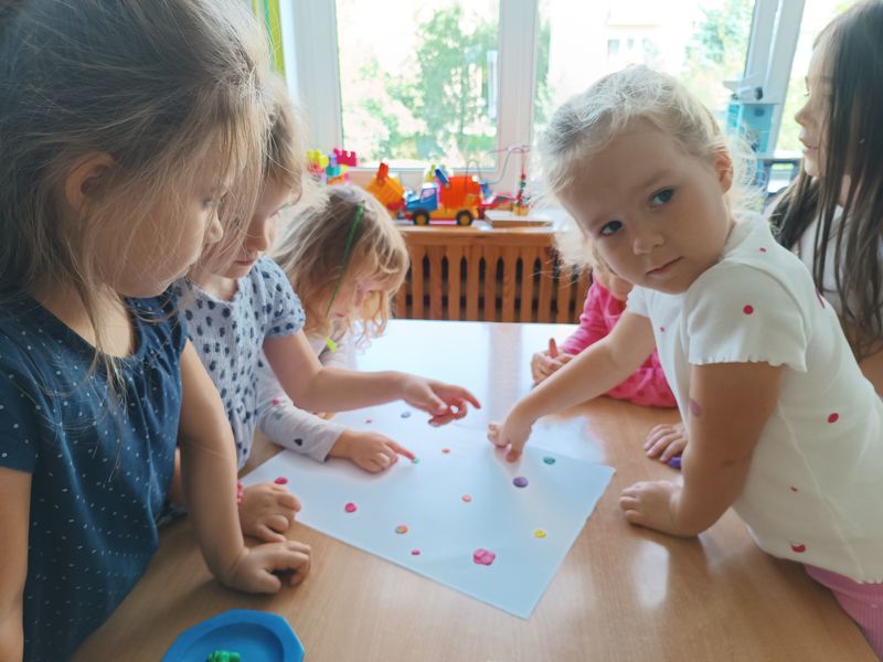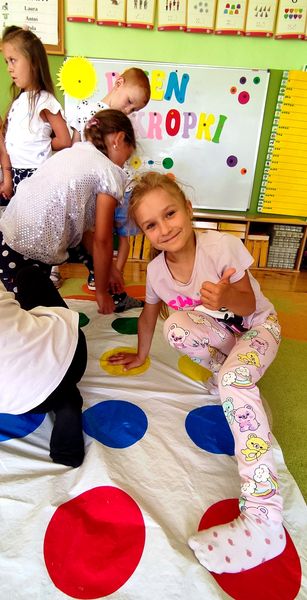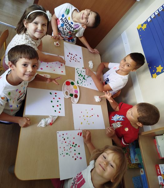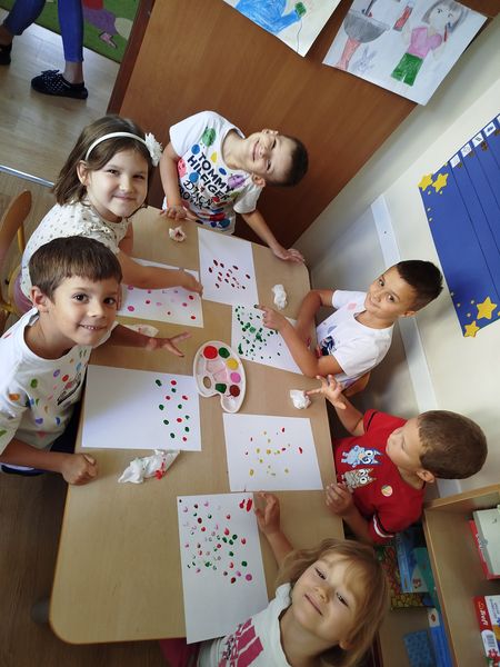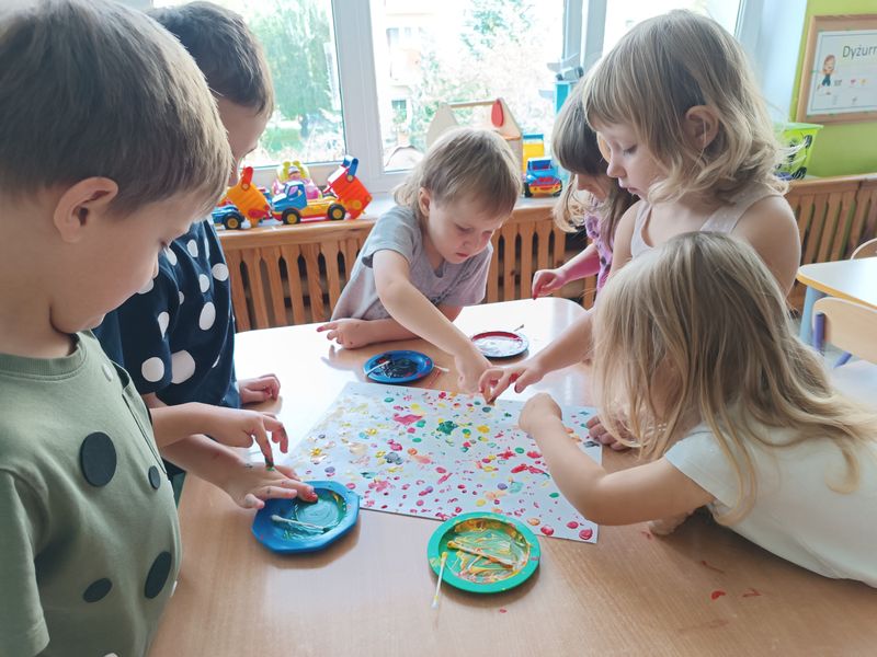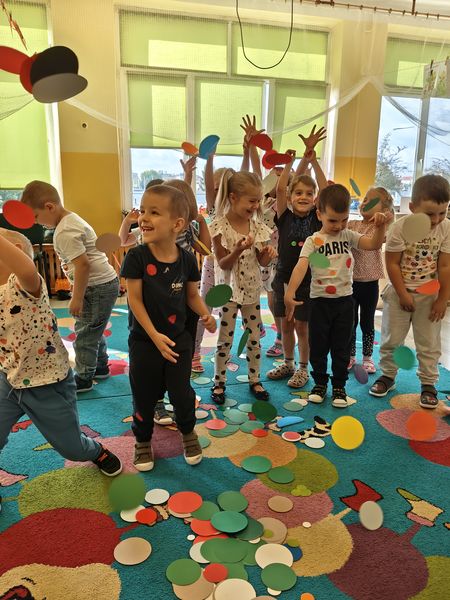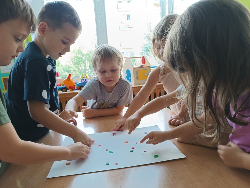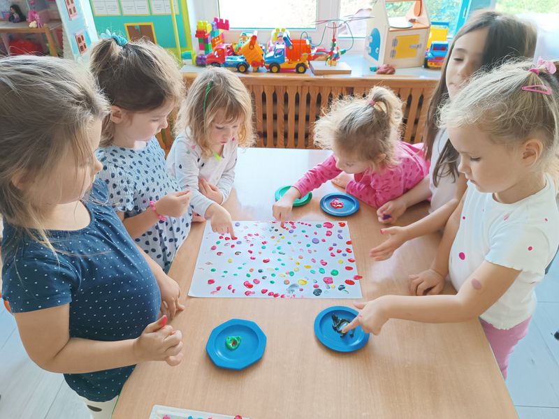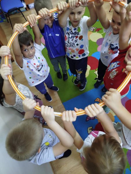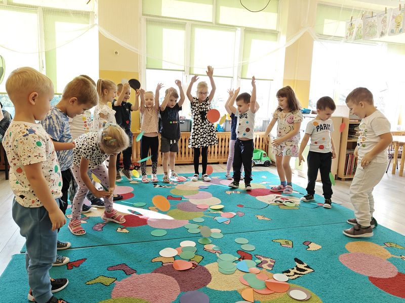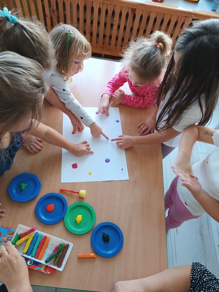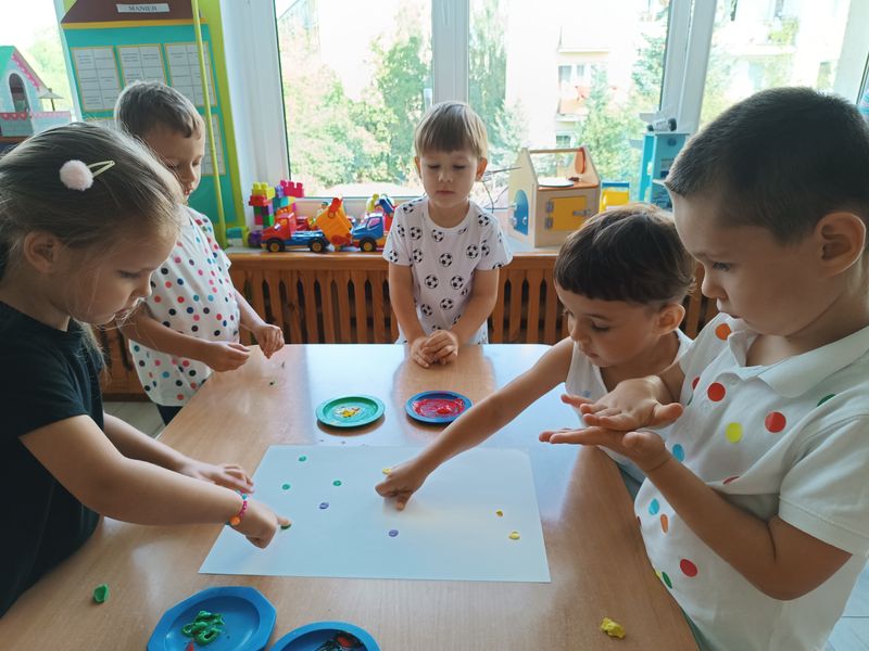 Tego dnia dzieci przyszły do przedszkola w strojach ozdobionych kolorowymi kropkami. W każdej z grup zostały zorganizowane kreatywne, nietuzinkowe zabawy z kropką w roli głównej. Przedszkolaki dowiedziały się w jaki sposób mogą dodawać innym i sobie wiary we własne możliwości. Podczas zajęć powstały też wyjątkowe i niepowtarzalne kropkowe dzieła sztuki.