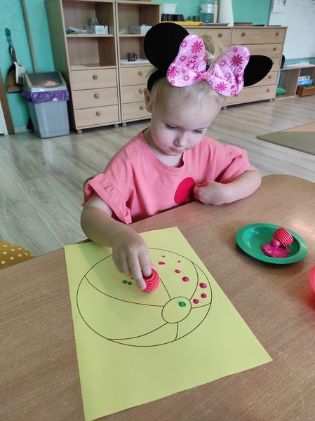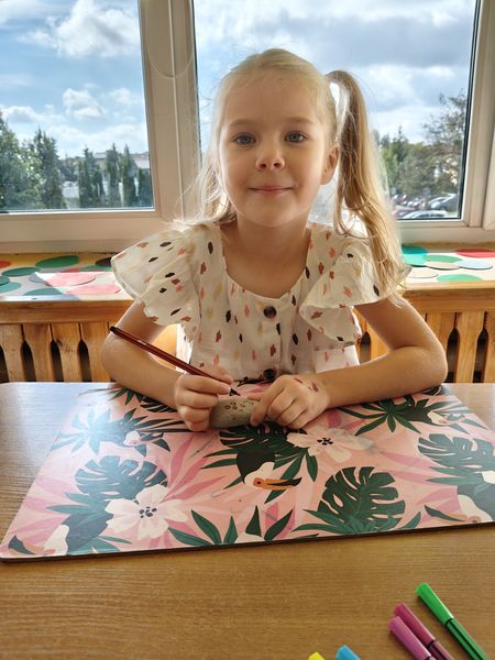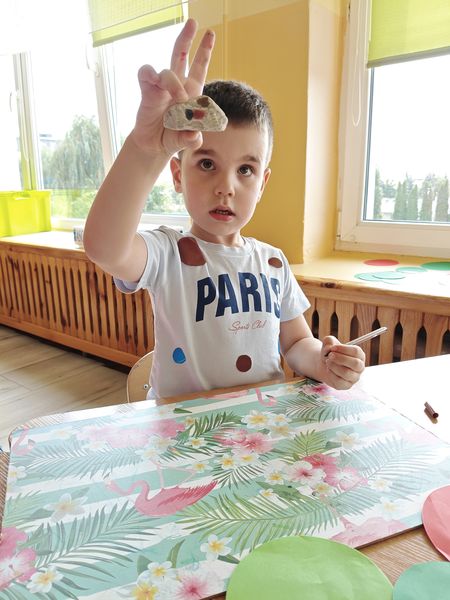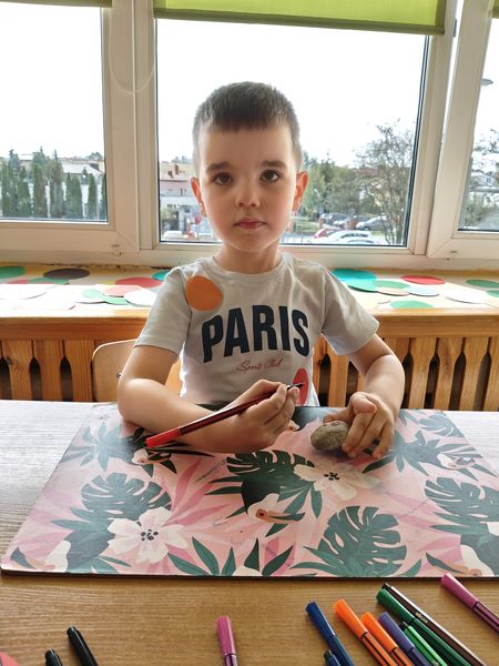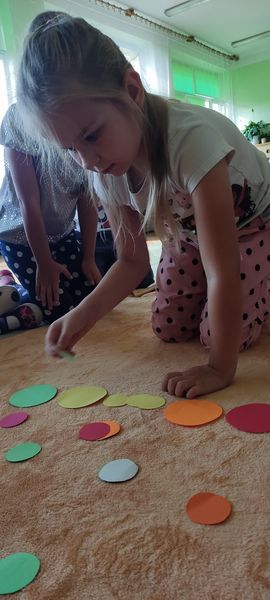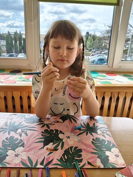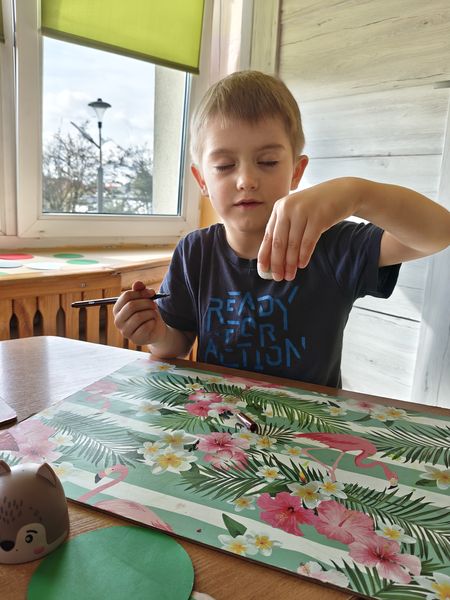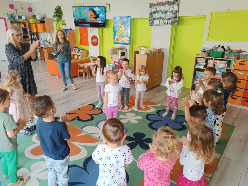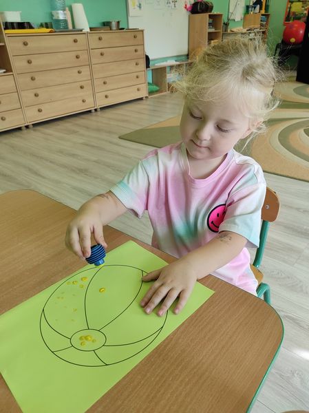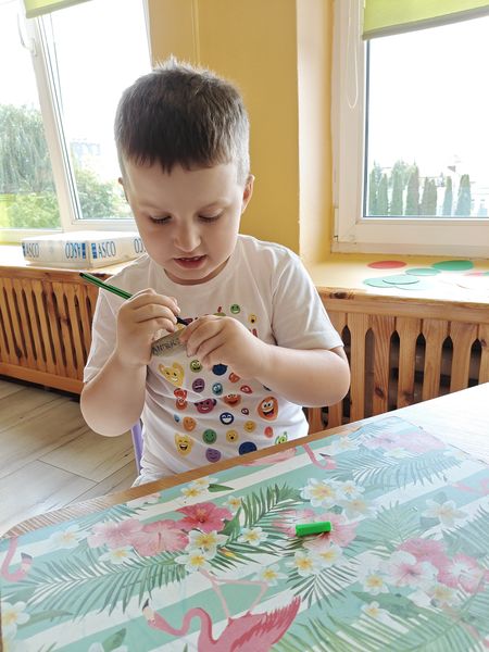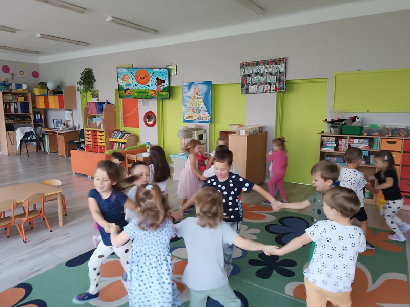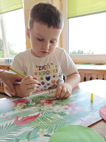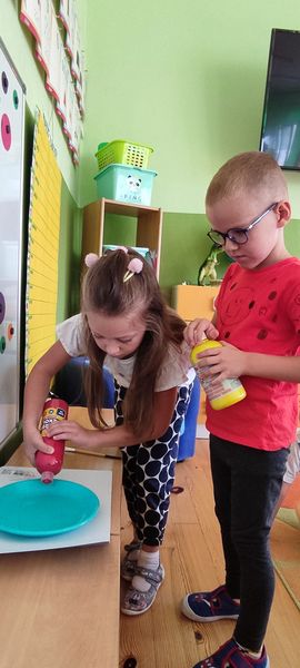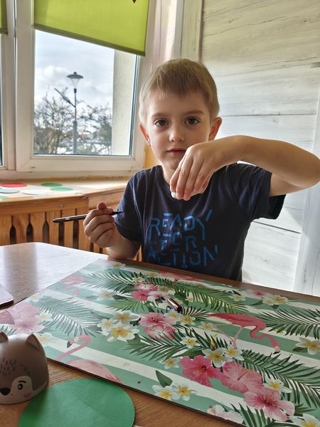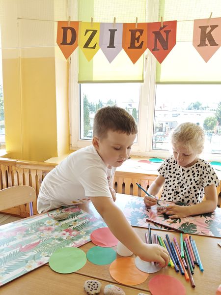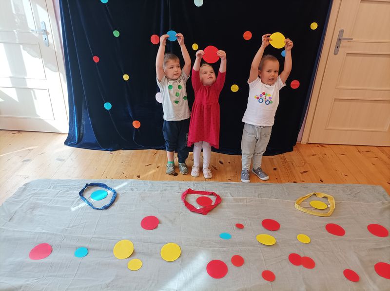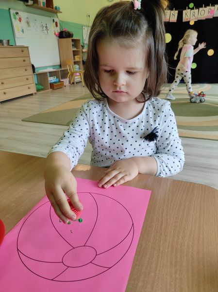 Tego dnia dzieci przyszły do przedszkola w strojach ozdobionych kolorowymi kropkami. W każdej z grup zostały zorganizowane kreatywne, nietuzinkowe zabawy z kropką w roli głównej. Przedszkolaki dowiedziały się w jaki sposób mogą dodawać innym i sobie wiary we własne możliwości. Podczas zajęć powstały też wyjątkowe i niepowtarzalne kropkowe dzieła sztuki.