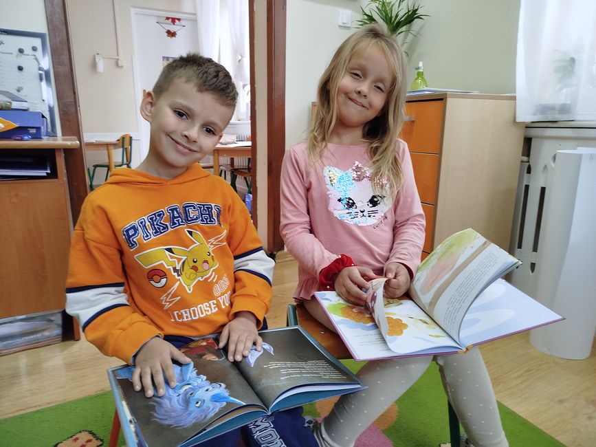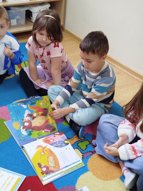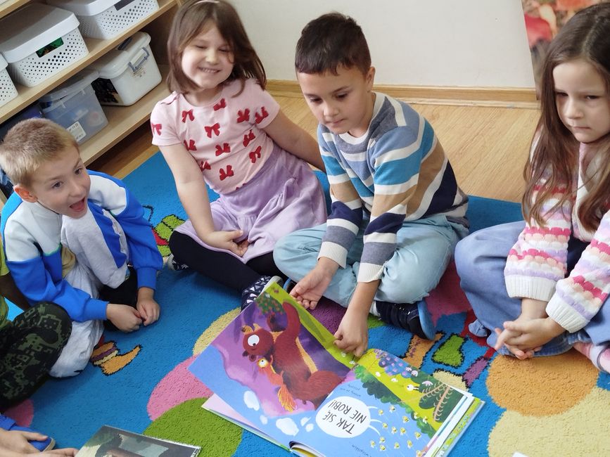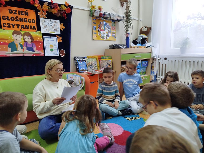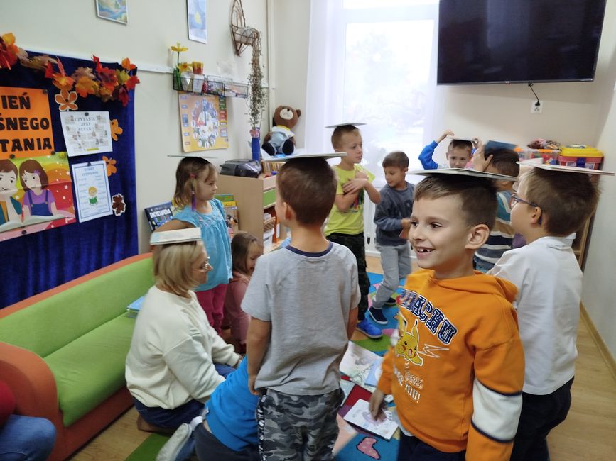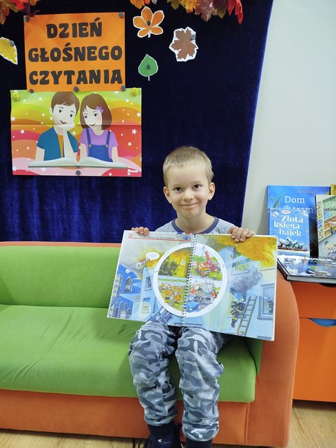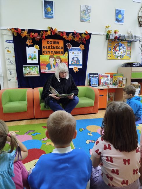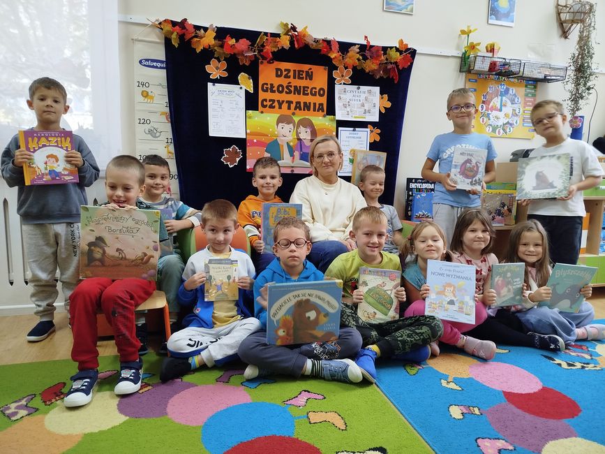 Dzieci przyniosły do przedszkola swoje ulubione książeczki, o których bardzo chętnie opowiadały. Bardzo chcieliśmy poznać wszystkie, dlatego zaprosiliśmy gości, którzy z radością dołączyli do wspólnego czytania. Jako pierwsza czytała pani Anetka - nasza nauczycielka języka angielskiego, która zaprezentowała dzieciom klasyczną bajkę „Goldilocks and the Three Bears” („Złotowłosa i trzy niedźwiadki”). Przedszkolaki z zainteresowaniem słuchały opowieści w języku angielskim, a przy okazji poznawały nowe słowa. Następnie odwiedziła nas pani Wiola z pobliskiej biblioteki, która nie tylko przeczytała dzieciom ciekawą historię, ale także przygotowała zabawy związane z książkami oraz drobne upominki. Do wspólnego czytania przyłączyły się również pani dyrektor oraz pani intendenta, które wprowadziły dzieci w świat kolejnych bajkowych przygód. To był fantastyczny dzień, ponieważ wspólne czytanie połączyło dzieci i dorosłych w kolorowej krainie książek i fantazji.